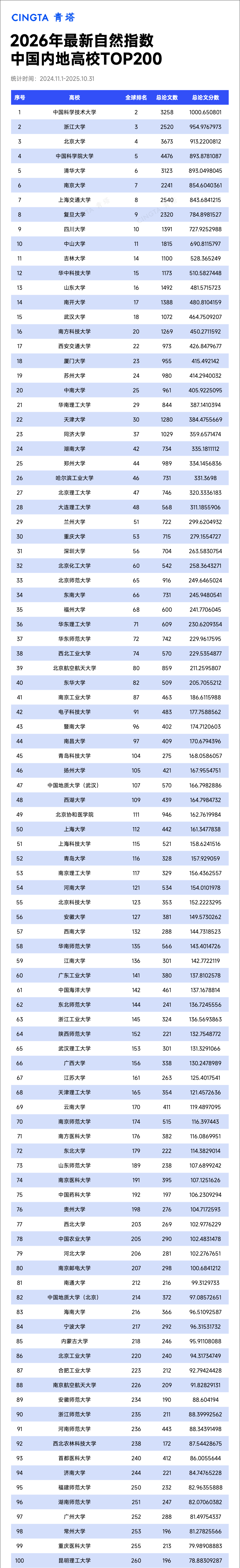最新全球大学排名发布:浙大,世界第一!上海交大排名第二,北大,未进前十...